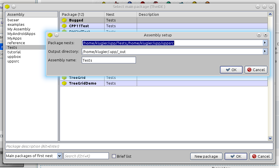 4. The package nests field will be prefilled with the setting for the "example" assembly, which is exactly the purpose of doing step 2. Replace "C:\upp/examples" with "C:\MyApps" (or wherever your MyApps rest), leave the uppsrc part untouched;