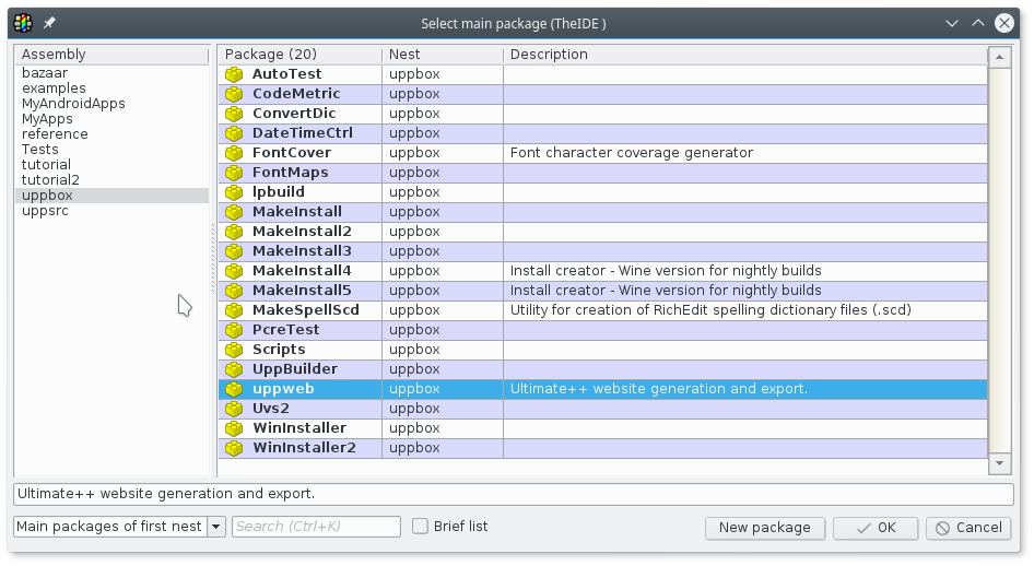 * The upp.spec file add this line to force the use of g++ or theide won't work out of the box: