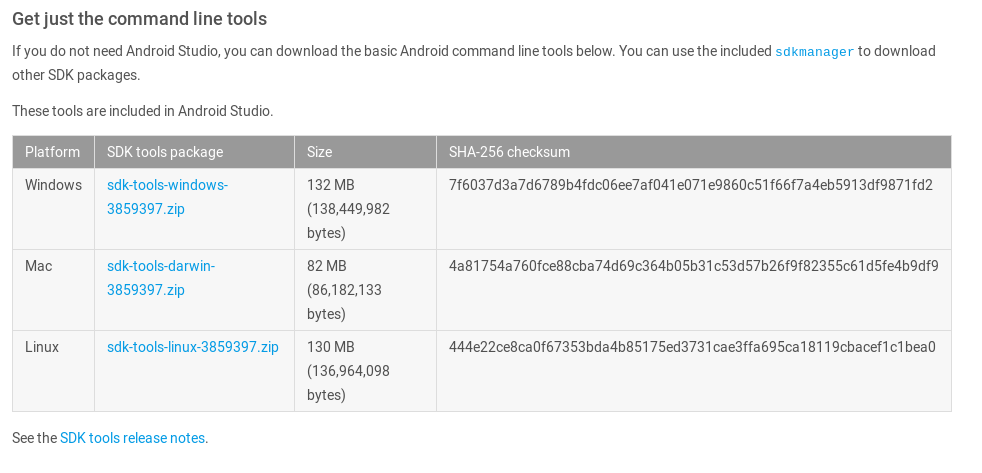 Official Android SDK download site