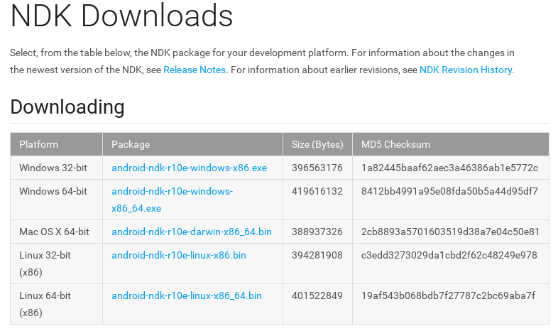 Official Android NDK download site
