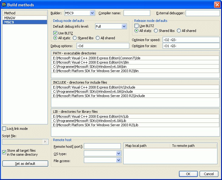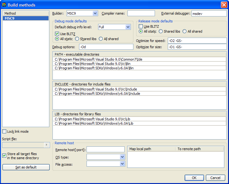 3. U++ Methods Auto-setup detects Win32 SDK directory now, but VC 9 directory not detected. i chose Visual Studio's, VC, and VC\bin directories, but none accepted by U++. after i clicked OK and reenter this configuration, it forgot what i chose. (i clicked Create Visual C++ 9.0 build method, too)