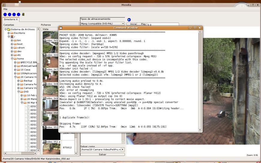 - With LaunchCommand(const char *cmd, void (*readCallBack)(String &)); I get the final .mpg DVD compatible file using mencoder. All the mencoder output goes to a function that sends it to a window (in the screengrab). If the window is closed, it kills the process before.