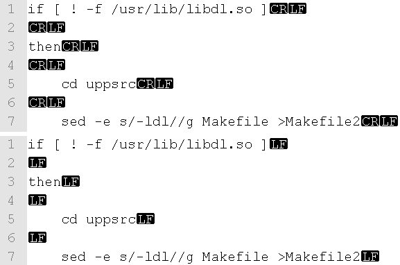 Using Notepad++ transformed CR+LF into LF is ok.