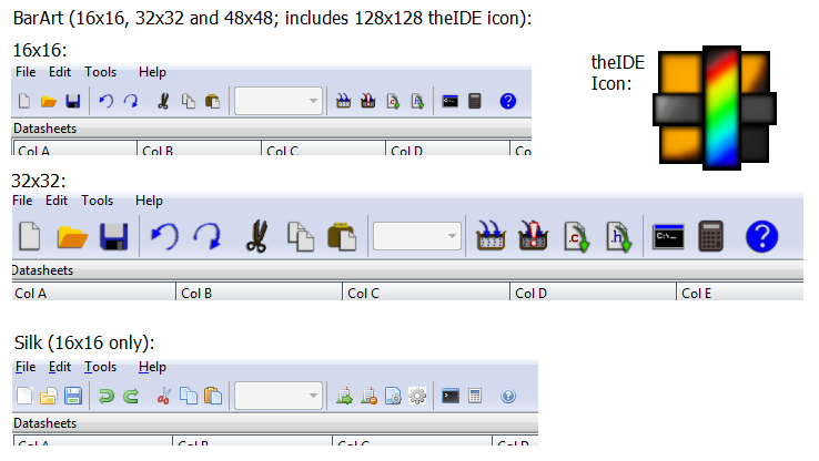 - Reproduced theIDE application icon (included as a 128x128 image in BarArt48 class): tried to keep the classic look, but make it a bit shinier.