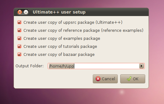 When you first launched TheIDE, did you see the "Ultimate++ user setup" box?