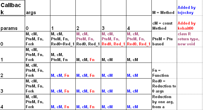 | mirek wrote on Sun, 12 December 2010 09:43 | So this is basically adding more combinations of arguments and parameters to Callback, similar to what was alredy there with callback1, right?