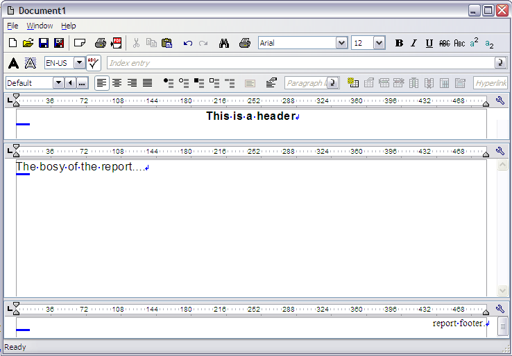 The problem: in this way also the styles of the three part are different and I wish to have only one sheet style. If I define a paragraph style in the header, body and footer don't get the same style.