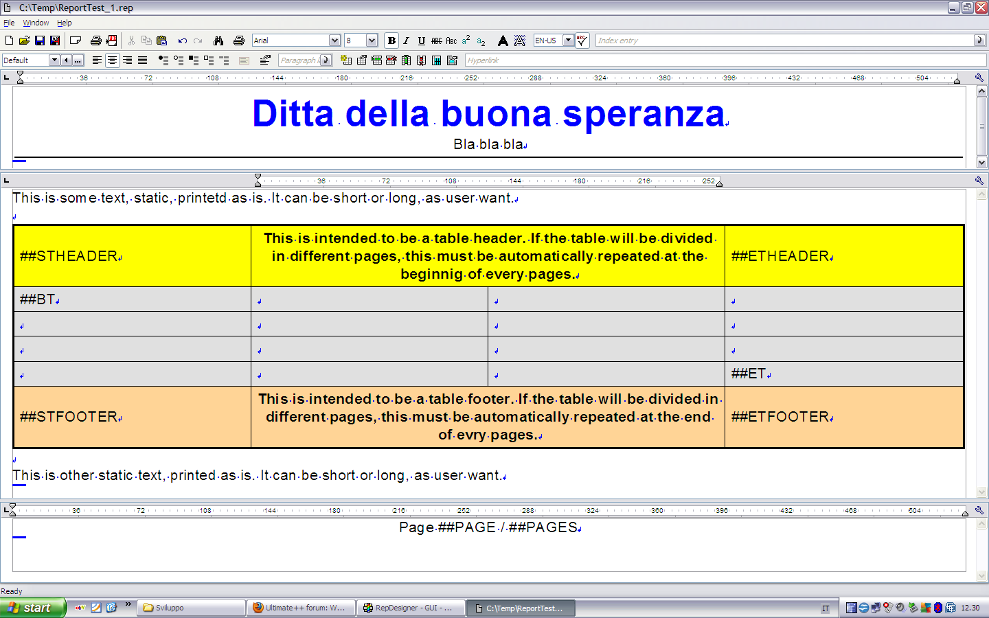 The page i splitted in three different part, named heade, body and footer, where, passed to the U++ Report package, are represented as is. that is ok.