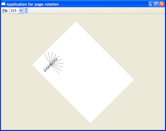 I see that the pages before printing is stored as a Drawing. Drawing may be possible to turn a few degrees as a bitmap?