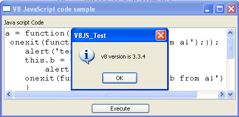 To run this example need to have a builded v8 3.3.4.0, add in include folders v8.lib (for windows) and run.