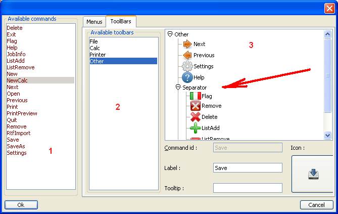 2- A menu/toolbar editor. It should be able to edit menu, toolbars and submenu items, both built-in ones and user-defined ones, see point 1.