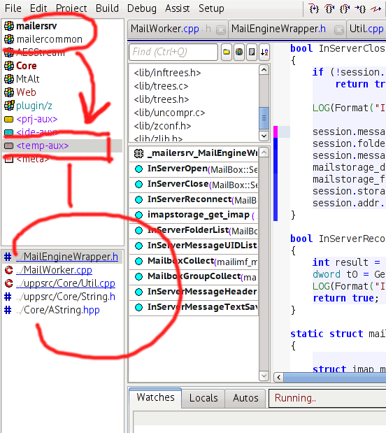 | Mindtraveller wrote on Thu, 26 April 2012 15:42 | I'm developing app under FreeBSD. While it is executed under debugger and stopped on breakpoint, this source file is considered part of <temp-aux>, not a part of current package.