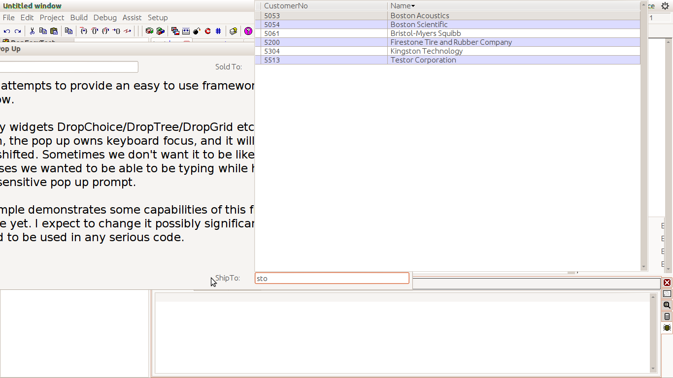 It aims to support auto-popup, auto-select, and auto-completion. Attached example shows auto-popup and auto-select. auto-completion is not currently supported. I am still debating on the mechanism to communicate auto-completion information from the popup to the owner (or main) ctrl.