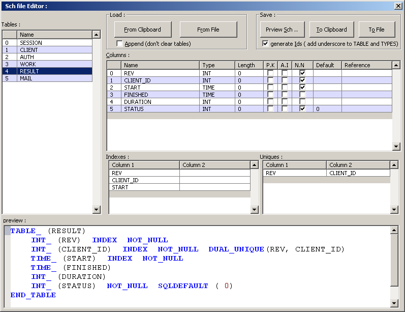 It looks interesting, but I don't quite see how it can help anyone. To use it, you need to have some understanding about .sch files and about SQL in general - I'd say that as much as you'd need to write the .sch file yourself. Maybe one thing that might be good about the editor is that it prevents typos and should always generate valid .sch file, but that can be easily checked by trying to compile it.