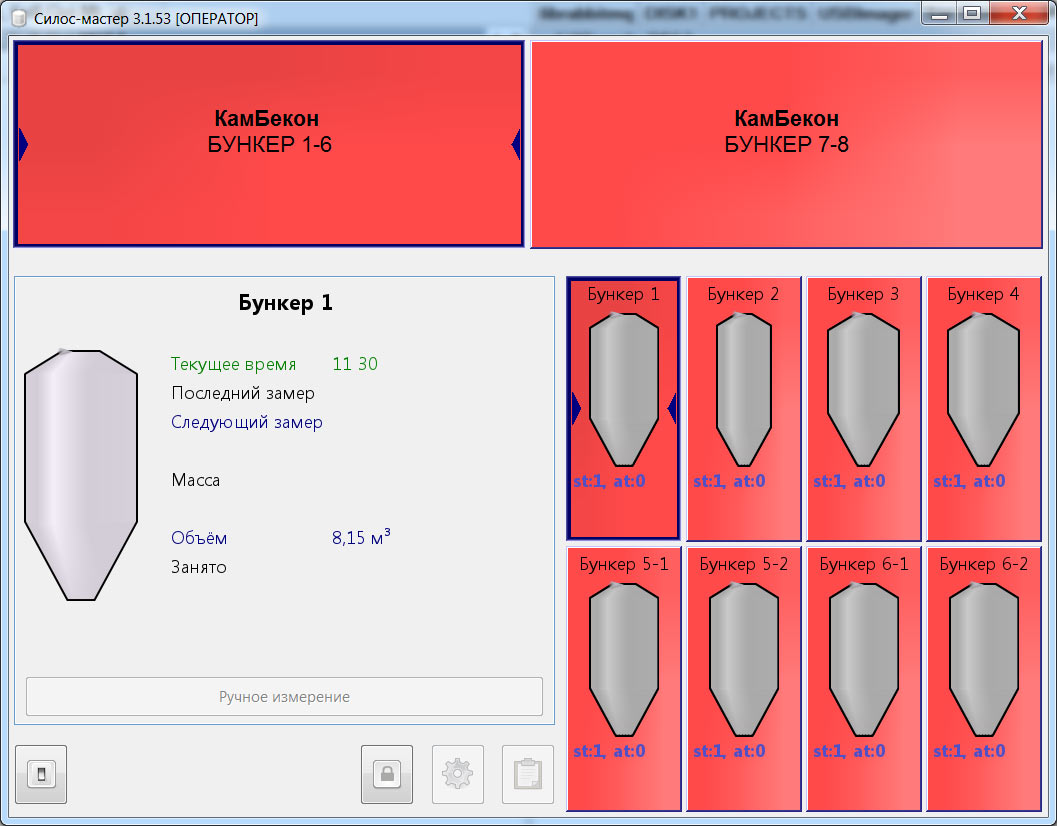 Silos-master is a kind of universal measuring system for industry. Uses a various set of sensors to determine an amount of product within the silos. Highly customizible options, different sensor types support (acoustic, rotor, tenso, etc.).