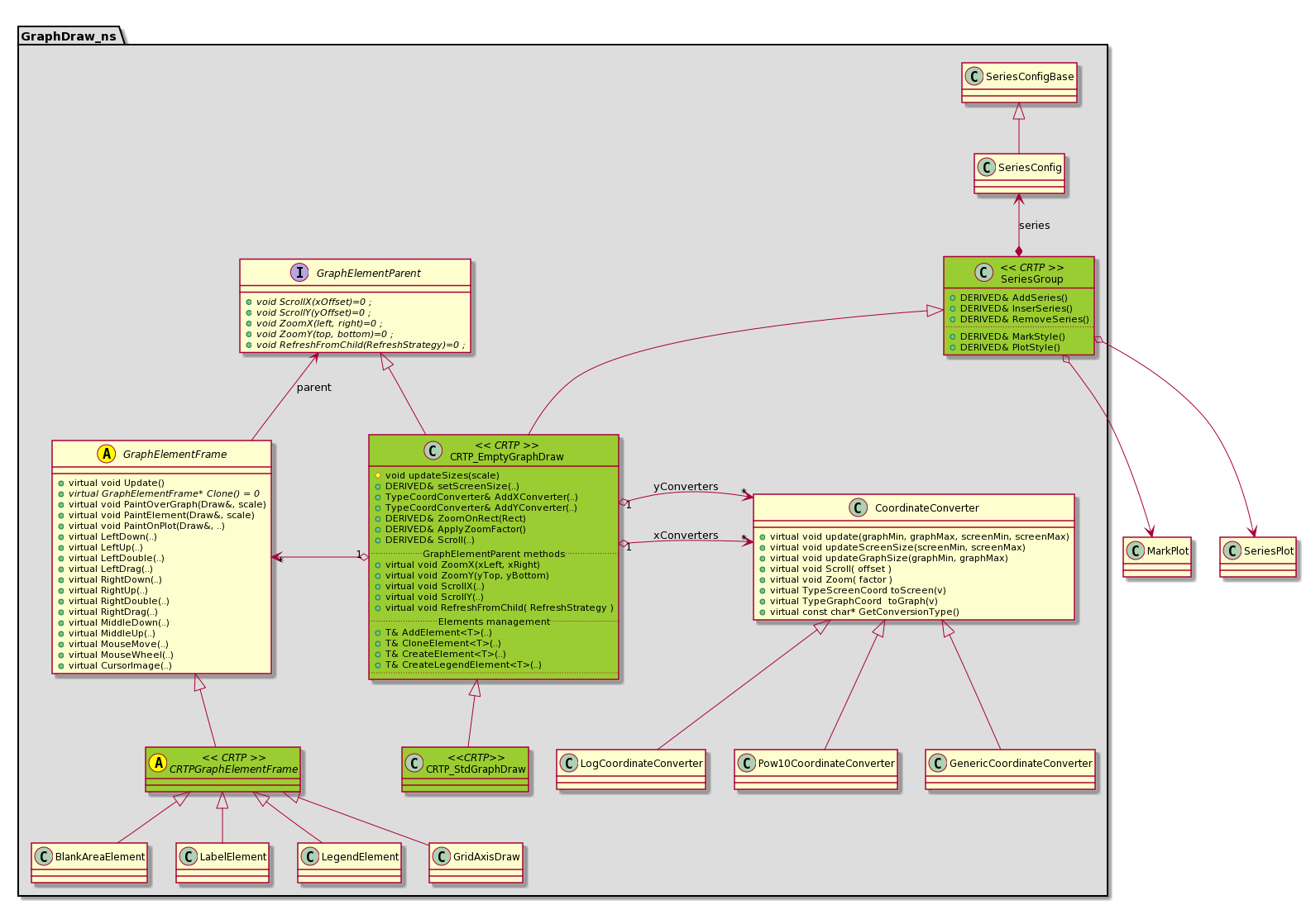 - A coordinate manager is in charge of each graph<->screen conversion => a unique instance is used for plotting, grid/axis management