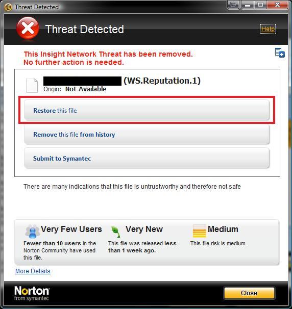Home » Community » Coffee corner » menace WS.Reputation.1 from symantec/norton