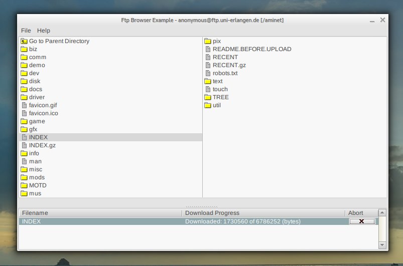 - FtpGUI: Demonstrates a basic FTP browser with GUI (with upload, download, mkdir, rename, delete commands).