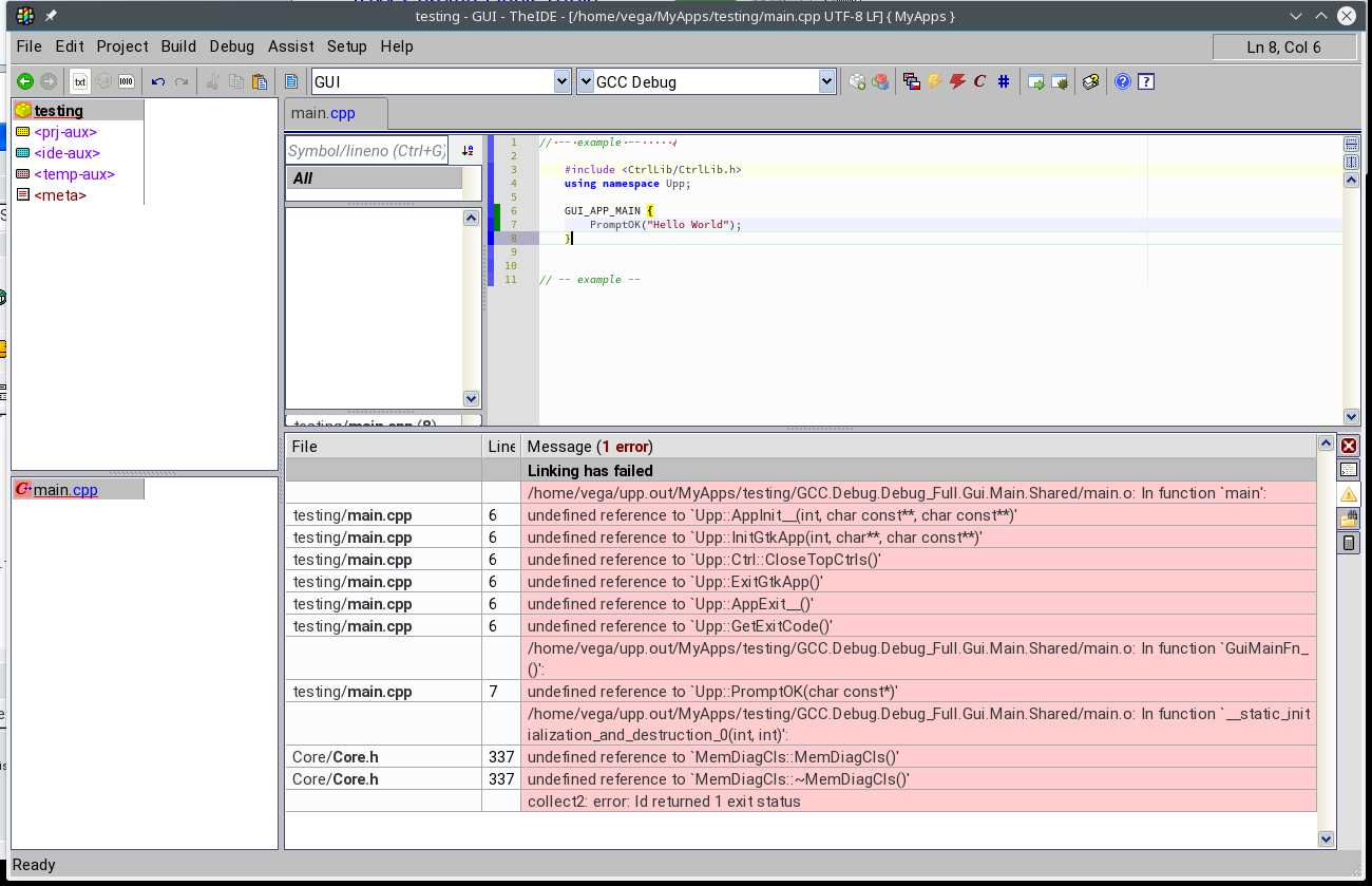 I wanted to run my first U++ code with "theide".