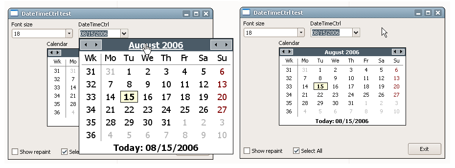 I developed new version of datetime ctrl. Please use it and report any bug. This version brings two importnat features: Scalability with system font size and calendar as a separate control: