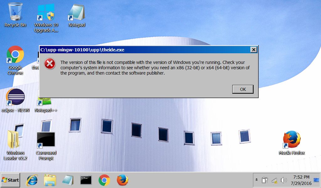 I downloaded upp-win-10108 and after a long search for a compiler trying to run any of the examples I get the same error in debug or release mode.