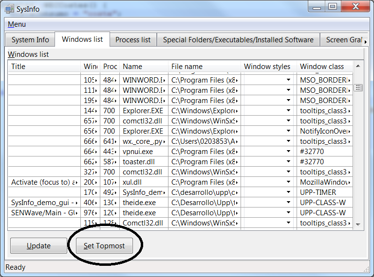 I have reviewed SetWindowPos() use in some forums and it seems it is properly used in SysInfo. In fact it is very simple. I could not find complains about using it in XP.