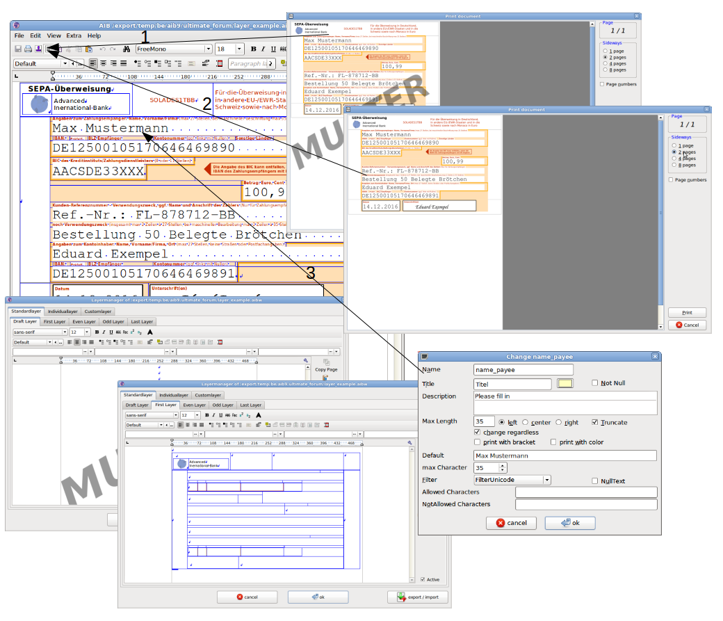 Via FieldManager you can create fields or import (*.csv, *.dsc). Some field calculate values from other field. Via setform-field values can be show/outline in a special format (simple formating rules).