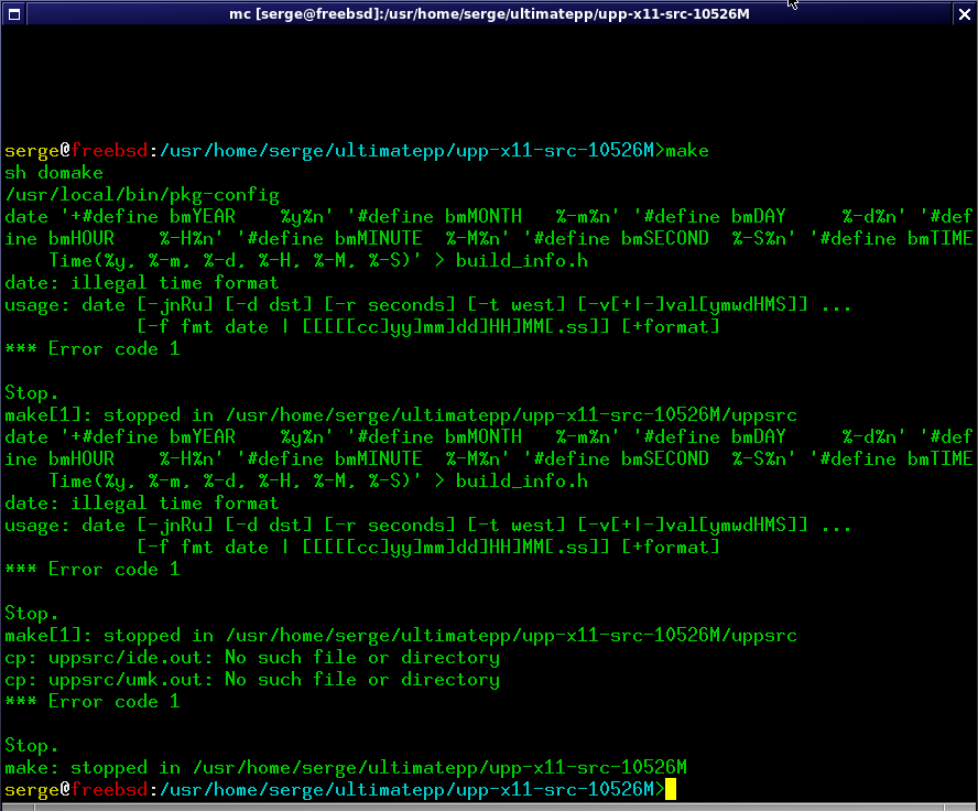 Also, the build_info target is not thread-safe (i.e., not possible to use parallel builds, e.g. `gmake -j 2` command). There are some (sed) patches for uppsrc/Makefile(.in) in devel/upp-nightly port, which fixes this. For example: