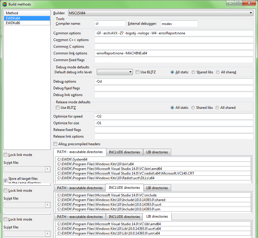 If somebody will decide to try this toolchain with upp, here screenshot of my initial (just to build examples) settings (win7 x64, x64 target, ewdk placed in c:\ewdk folder):