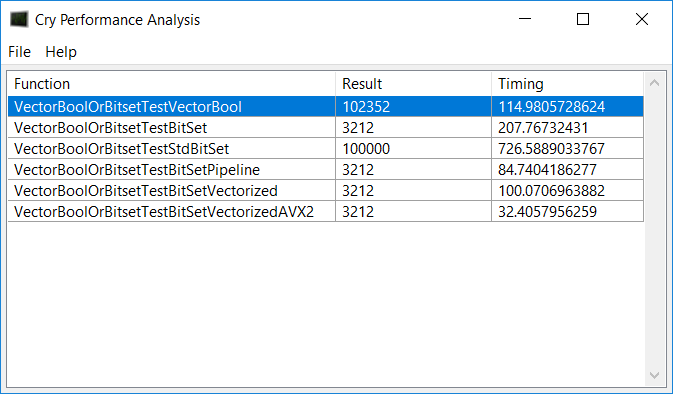 The source code is of the other tests is once again located at my Bitbucket repository: https://bitbucket.org/evolution536/cry-performance-test/src/ 212c3b4f51a29efa0e70841e76cceb11bcaacf06/VectorBoolOrBitsetT est.cpp?at=master&fileviewer=file-view-default