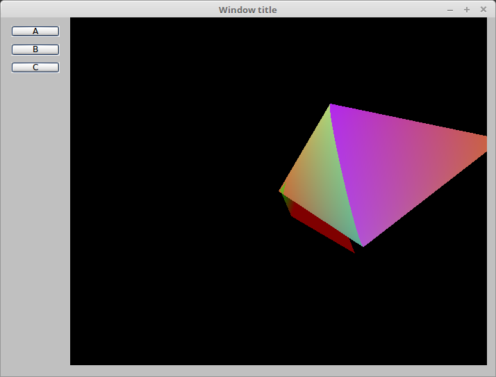 Below is a screen shot of a quick app that I've thrown together as a starting point, first to see if it's possible to build a U++ GUI with an OpenGL window. The push buttons, "A", "B" and "C" haven't been programmed to do anything yet and will be redefined. The OpenGL code was pulling in from the "OpenGL" demo found within the U++ theide reference section,... and is to be gutted when I start playing around with the code tomorrow.