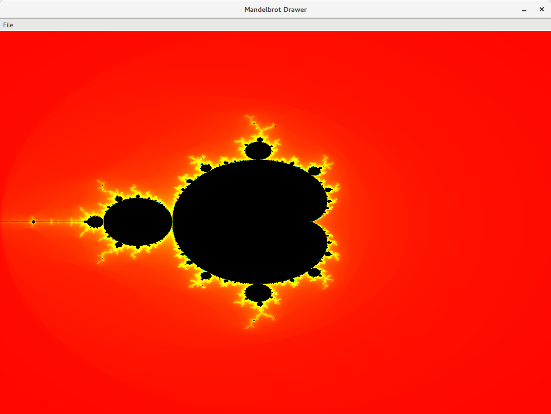 // This method draws the famous Mandelbrot fractal, using the escape time algorithm (slow).