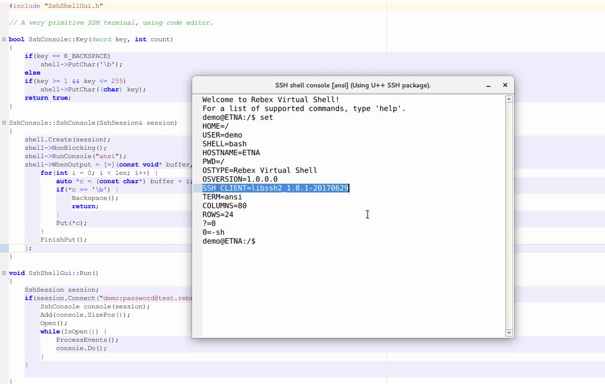 Home » U++ Library support » U++ MT-multithreading and servers » SSH package for U++ (A feature-rich ilbssh2 wrapper for Ultimate++)
