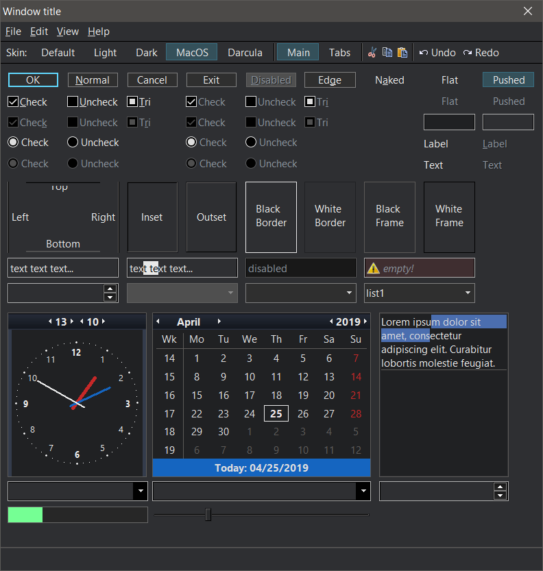 I'm between two worlds: half of my effort is fixing bugs and parametrizing the skin for a future custom skin (make the current U++ implementation look good, but in line with what exists today), half trying to implement a good skin (I like this one https://midnightsketch.com/)