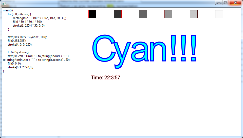Works really well! I see a lot of potential in it! All we need is a bit of color API and helpers. And function overloading if it is not supported .