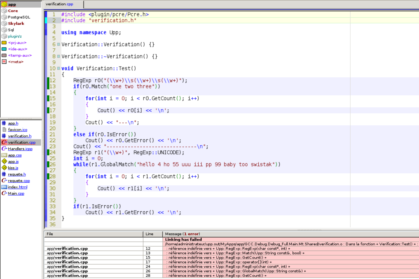 I have a linking problem when i try to use RegExp. Can you help me ?