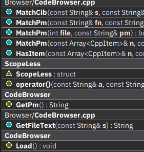As you can see the parameter/return types, qualifiers etc. are very hard to read on the navigator (and on other places as well), due to their color. That color (purple?) is particulary hard to read on dark backgrounds. IMO a different and lighter color would be great.