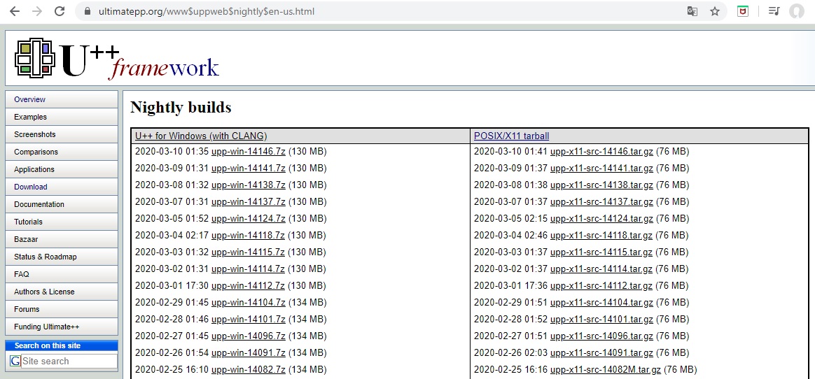 Last nightly build (upp-x11-src-14146.tar.gz) is of date 2020-03-10.