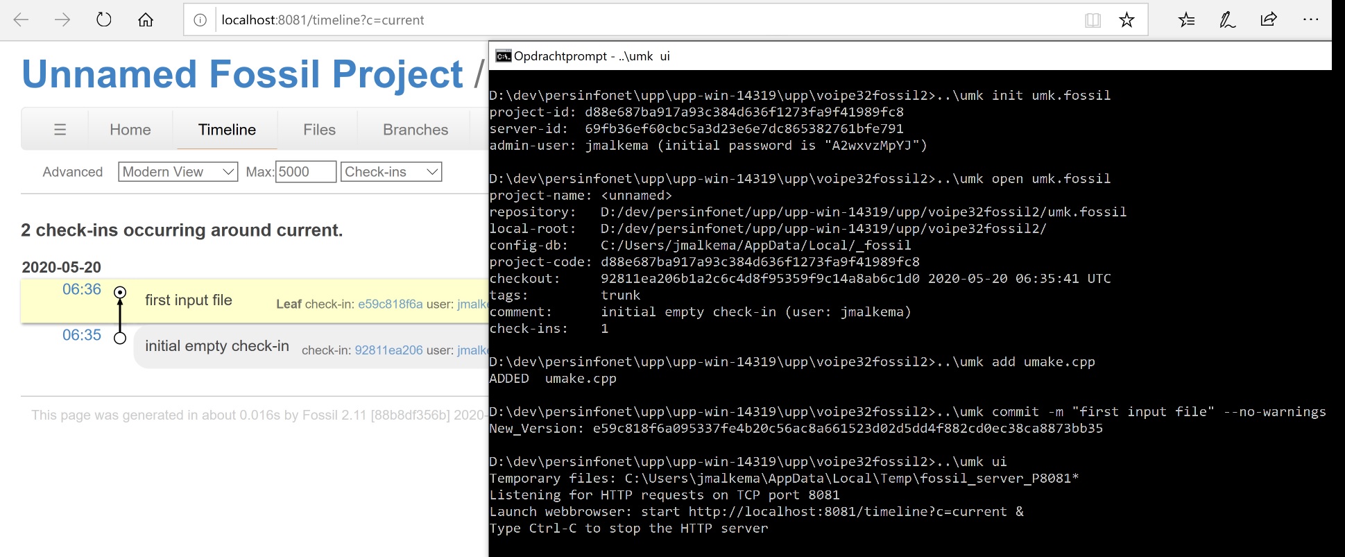 Only after compile/link is succesful, then the Commit-Fossil-command will actually put the files in the umk.fossil repository.