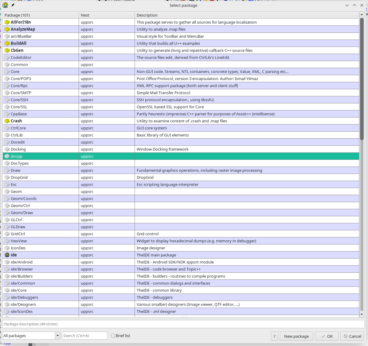 I found one more issue. Not critical from the stability point of view, but for the general usability for users. A lot of uppsrc package has lack of description. When you add uppsrc dependency to your project you analyze this short description and on this basis you made the decision whenever package fits to your project/package or not.