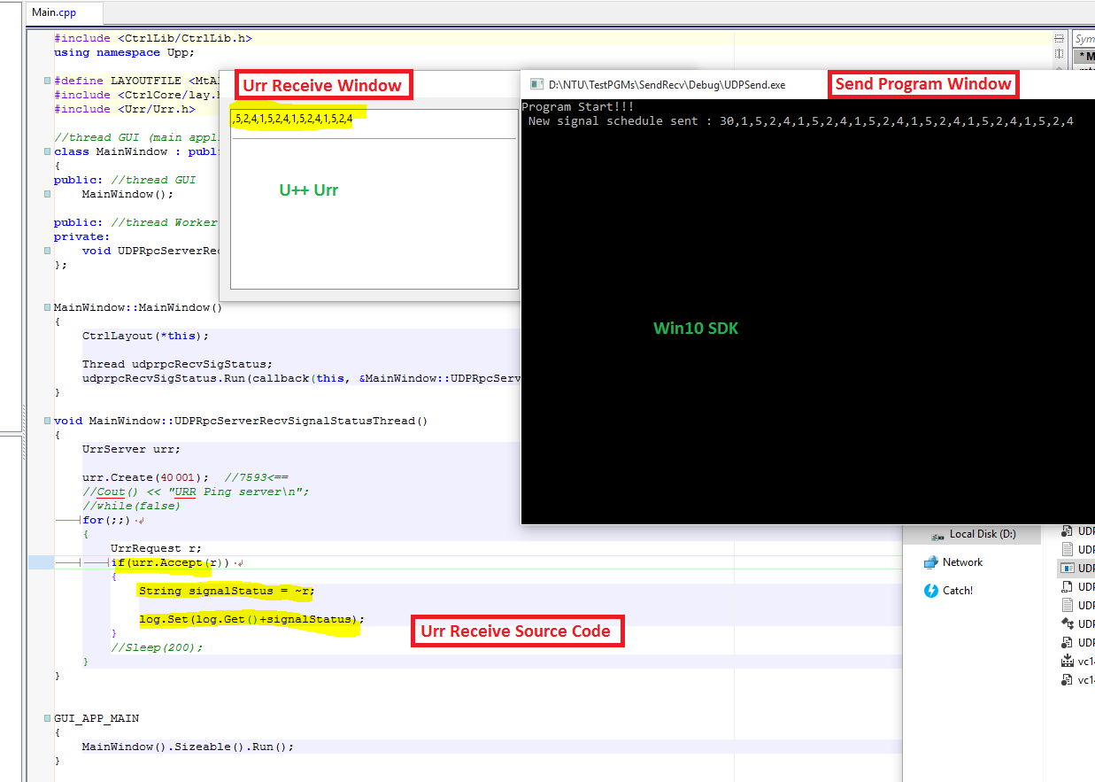 P.S. I also tried to send data from U++ Urr and receive it by win10 sdk program. Win10 sdk program crashed immediately after I launch the sending program.