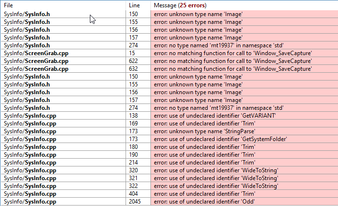 - The line numbers of the errors in SysInfo.h don't match with the lines in the actual code