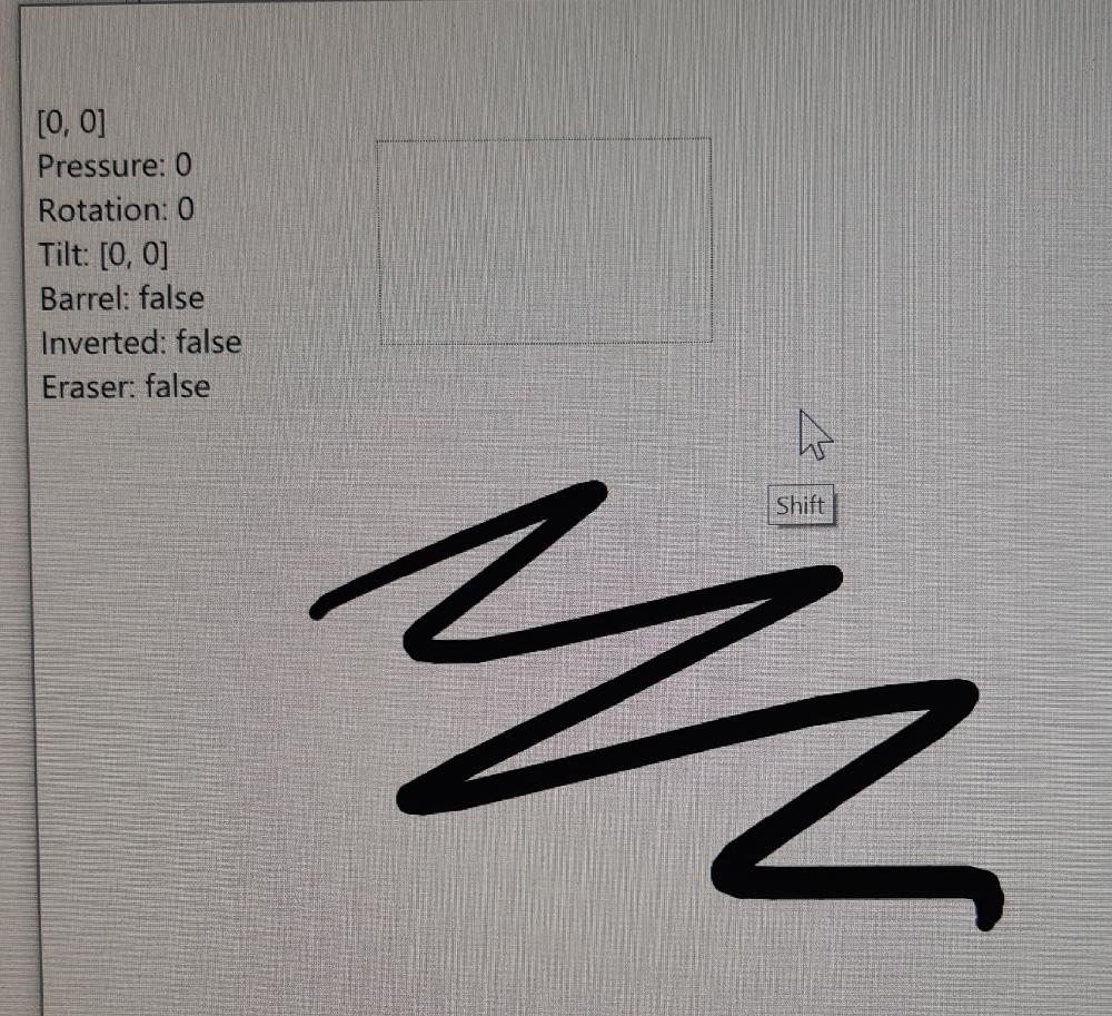 - NO Pen() event. Everything comes in as MouseMove, LeftDown, LeftUp... (This likely means there is no WM_POINTER* messages and everything is already translated to WM_MOUSEMOVE, WM_LBUTTONDOWN,... etc.)