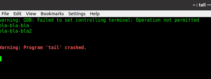 After I start debug this console window appears, Warning: Program 'tail' crashed.