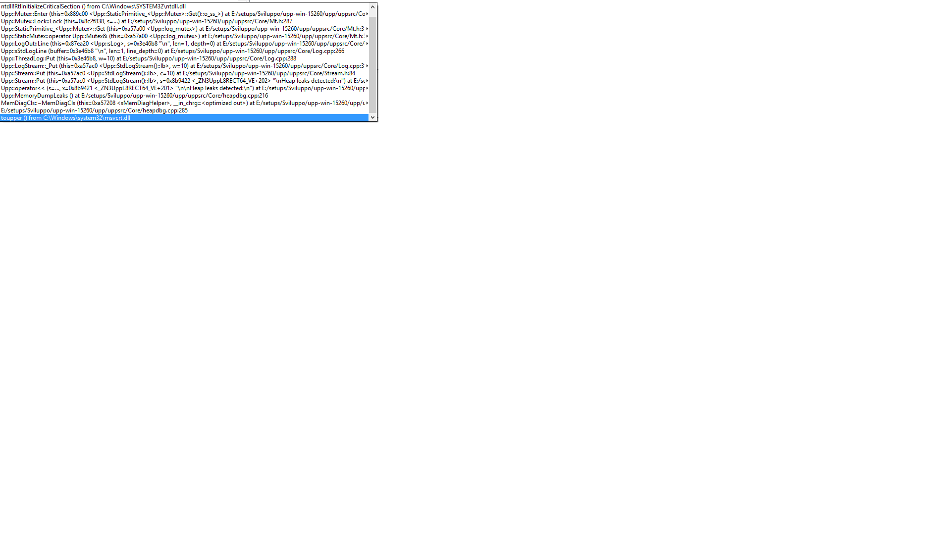 Home » U++ TheIDE » U++ TheIDE: Other Features Wishlist and/or Bugs » memoryDumpLeaks (application crashes when closing)