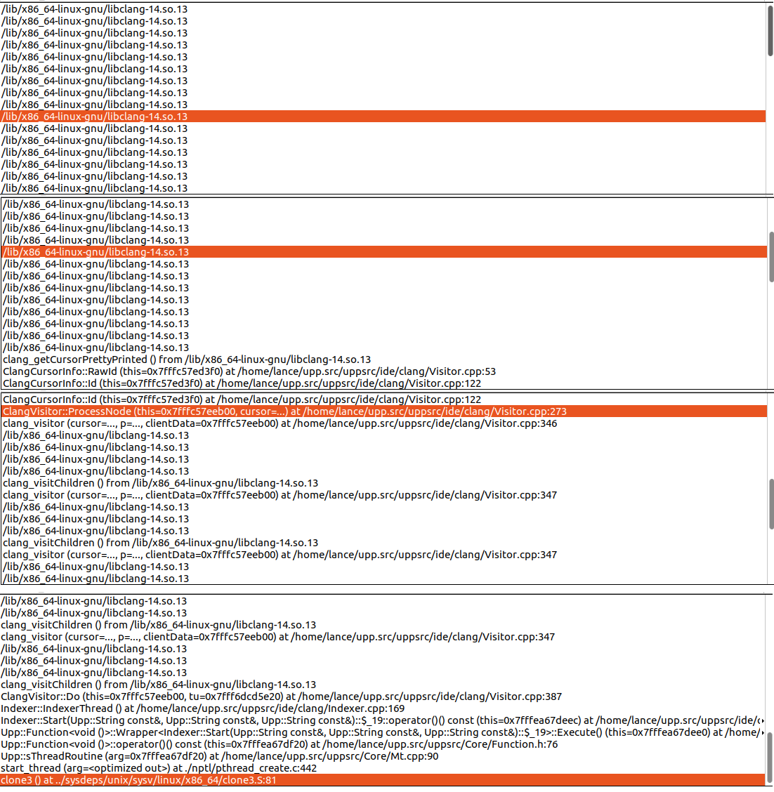 In order to have more reasonable callstack, you can build the newest TheIDE in debug mode with the older one that works on previos Assist++ version. For example to do it you can use TheIDE from the latest release 2022.2.