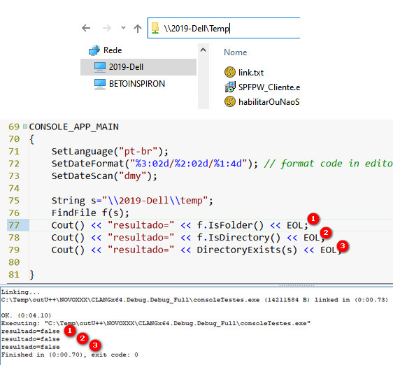 Cout() << "resultado=" << f.IsFolder() << EOL;