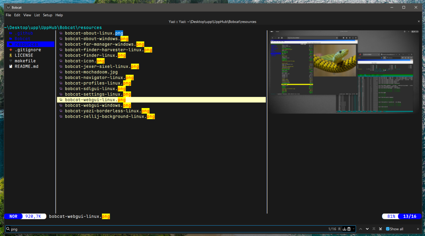 For example, you can now run NeoVim and Yazi (an awesome terminal file manager) on Bobcat's Windows builds.