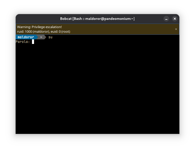 - Root detection on Linux: Bobcat can now detect privilege escalation and warn the user accordingly. (2a41e02)