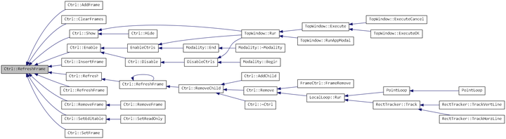 May be, following caller graph diagram created by Doxygen and Graphviz programs for Ctrl::RefreshFrame (from CtrlCore perspective only) can be useful: